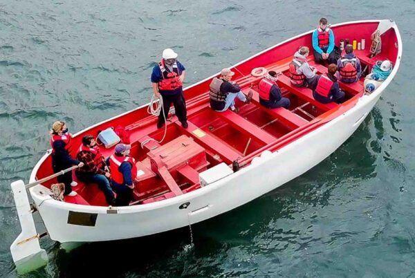 Practical assessments include launching and recovering a lifeboat, demonstrating oar commands, rowing a lifeboat and starting and stopping a lifeboat engine.